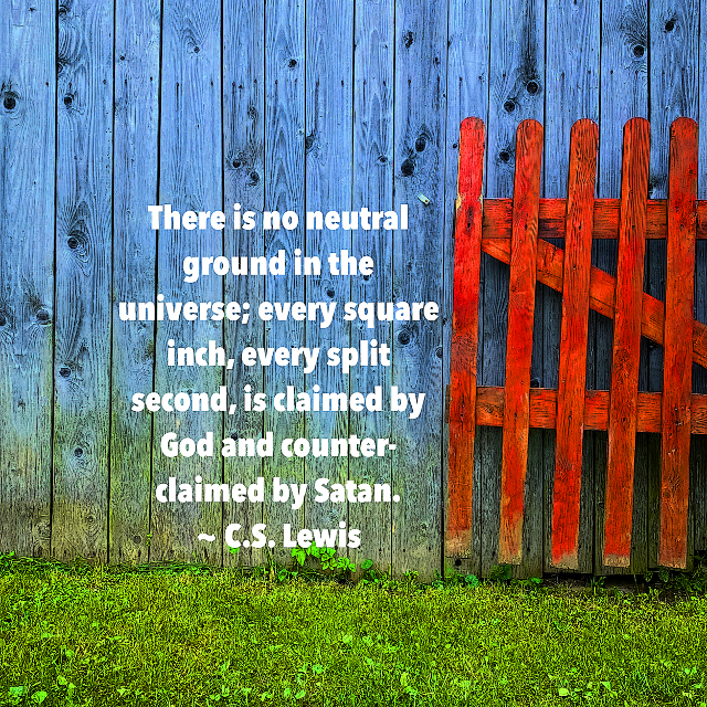 C. S Lewis wrote, “There is no neutral ground in the universe. Every square inch, every minute of every hour is claimed by God and counter-claimed by Satan.”